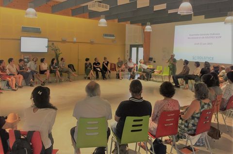 Après un accueil en douceur avec café et brioches, nous, associé•es et entrepreneur•es, avons pris place dans un grand cercle afin d’évoquer, tous ensemble, l’actualité de la coopérative, ce qui nous bouscule ces derniers mois.